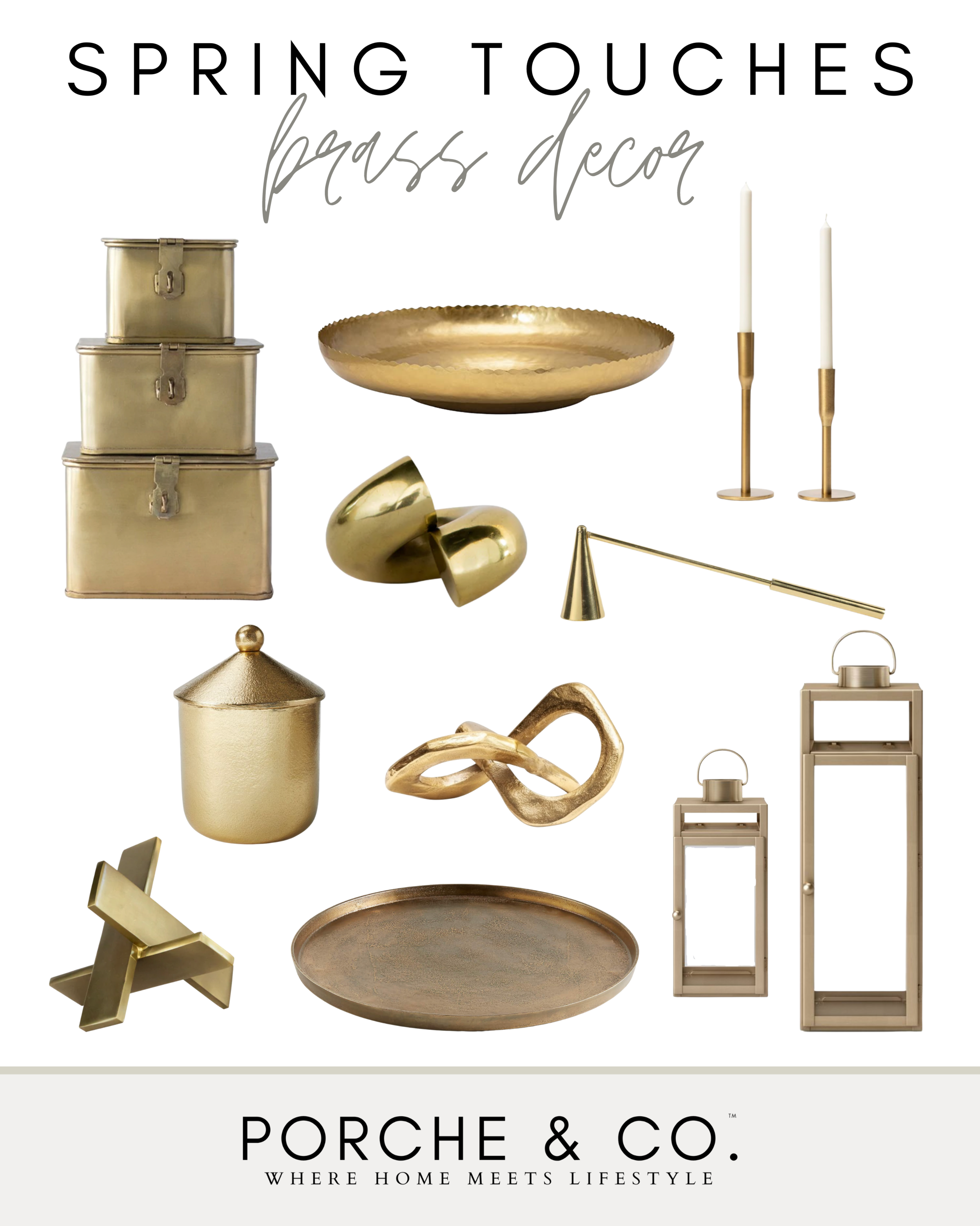 We also love adding mirrors in order to help reflect light back into a space, and give the room a more spacious and brighter feel. Metals accents can also be changed out from colder season dark bronzes to a brass tone. Gilded metals like yellow gold or brass with reflective finishes will add a pop of warmth and brightness to your decor. Here are some of our favorite brass accent pieces::