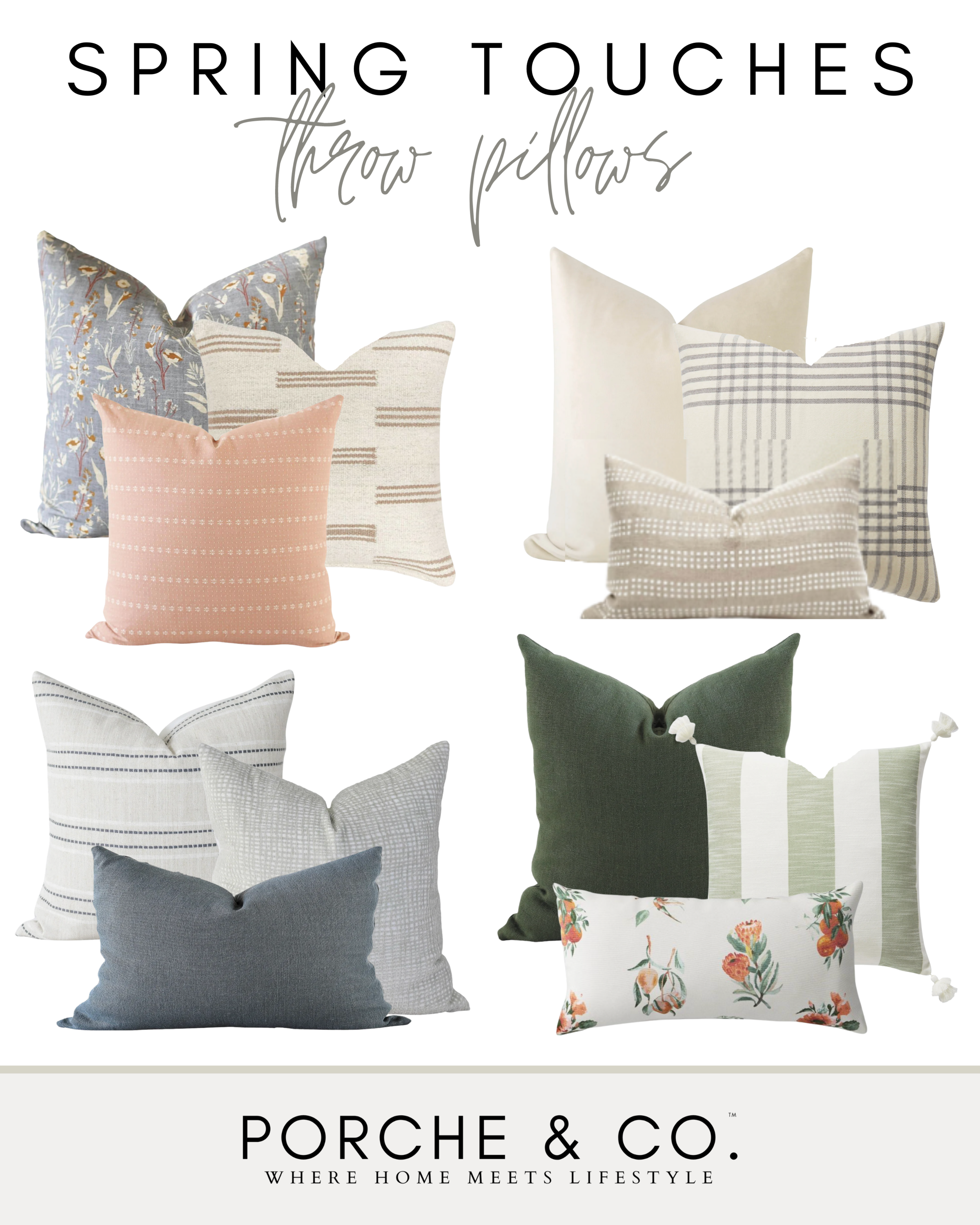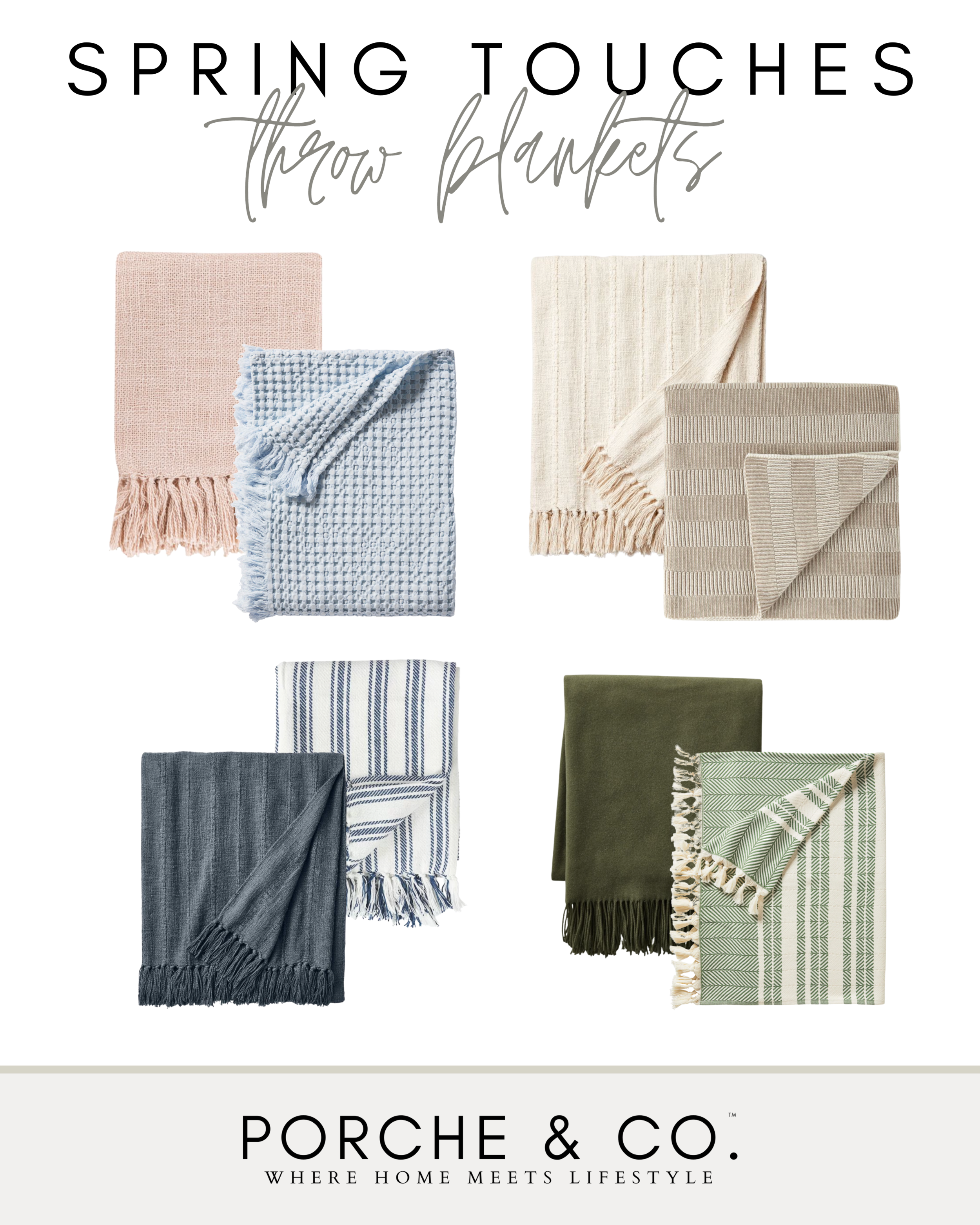 Finally, the days are longer, the weather is warming up, and Spring is right around the corner! It’s time to brighten up our spaces and let the sun in. When we think of Spring- we think about light colors: white, beige, muted pastels. The easiest way to incorporate these colors is through your home décor! Switching out your throw pillows and blankets with ones made of lighter materials and colors is quick, easy, and affordable. Blankets and throw pillows also allow you to add texture and prints to your space. We love soft floral prints, stripes, macramé and tassel detailing. Here are some of our favorite Spring pillow and throw blanket picks::