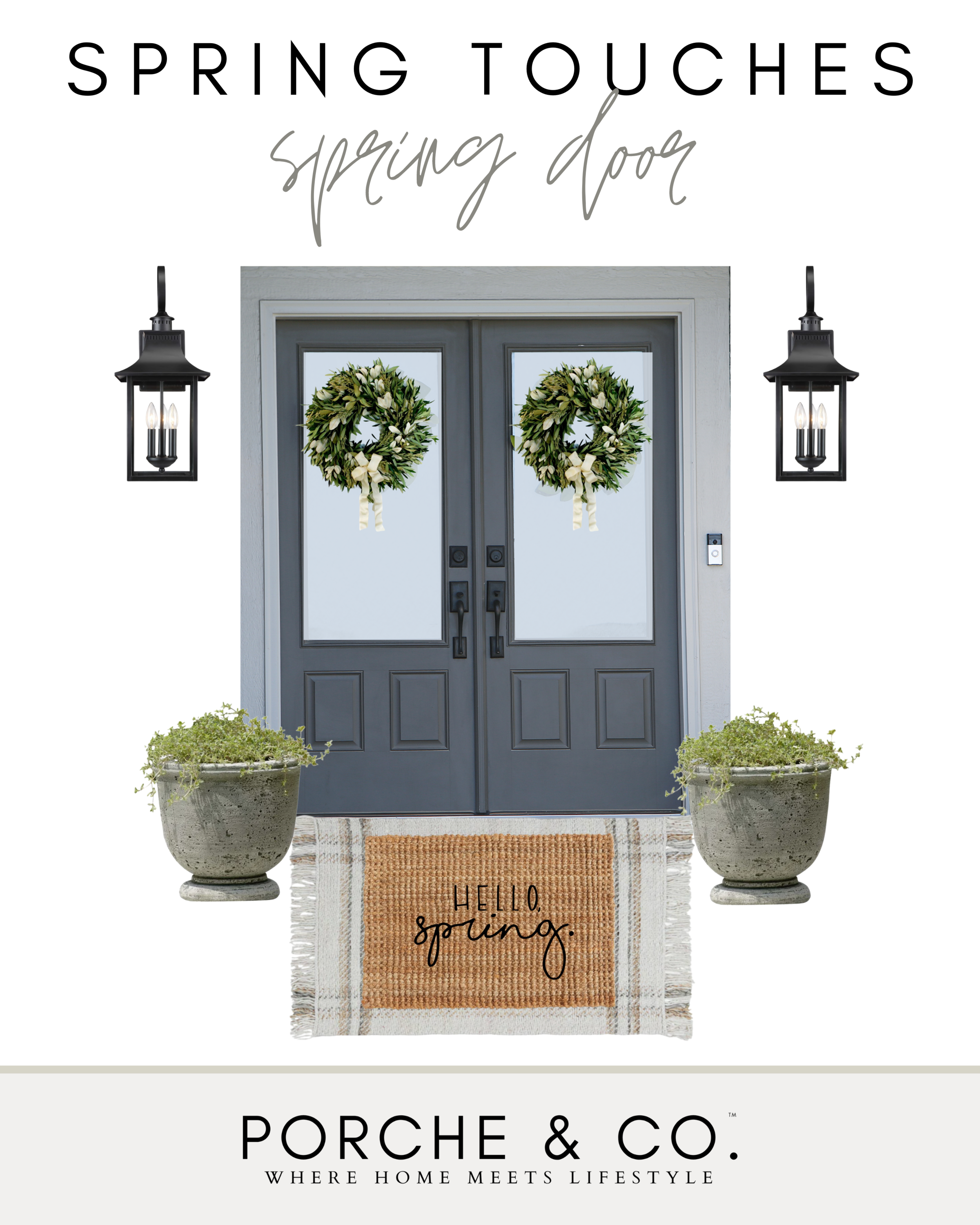 Incorporate décor outside as well to mark the change of seasons and set the tone for what is to come inside your home. A fun way to do this on your front porch is through changing out your welcome mat and adding a Spring inspired wreath to your door. This will create a cohesive bright welcoming feel as your guests enter and leave your home.