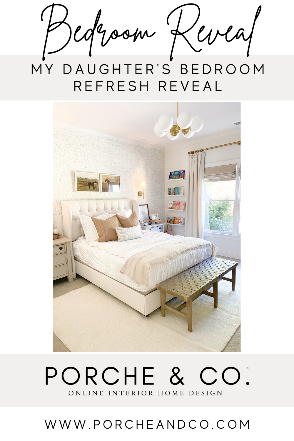 As my daughter is getting older, I knew I wanted to refresh her bedroom to make it a space she could continue to grow into for years to come! when we first moved into our house and added on the upstairs edition, i wasn’t deep into the design world and really had no idea what i was doing, so just threw a room together for her. after living here for 5 years and knowing exactly what my design style is and my daughter’s personality as she gets older, i worked with avery to design a space that she will love for years and years to come!