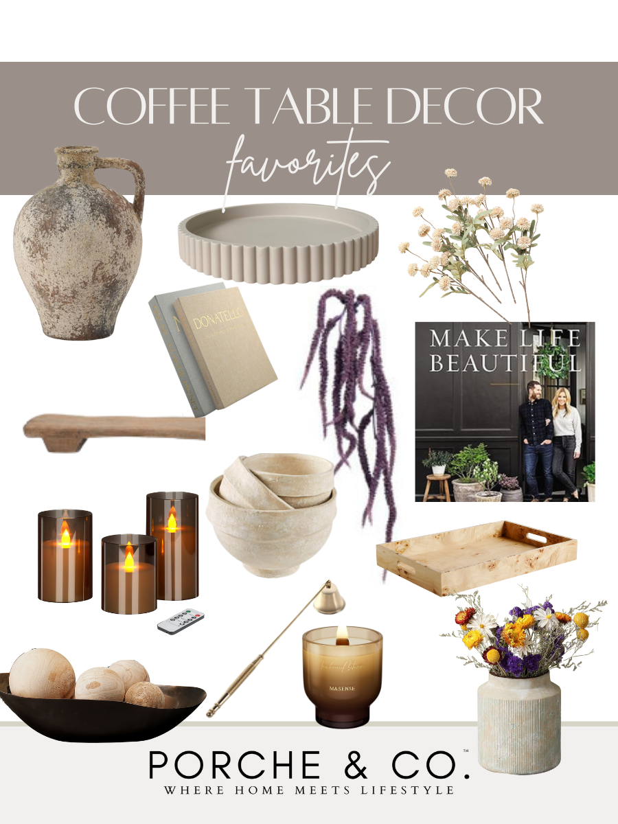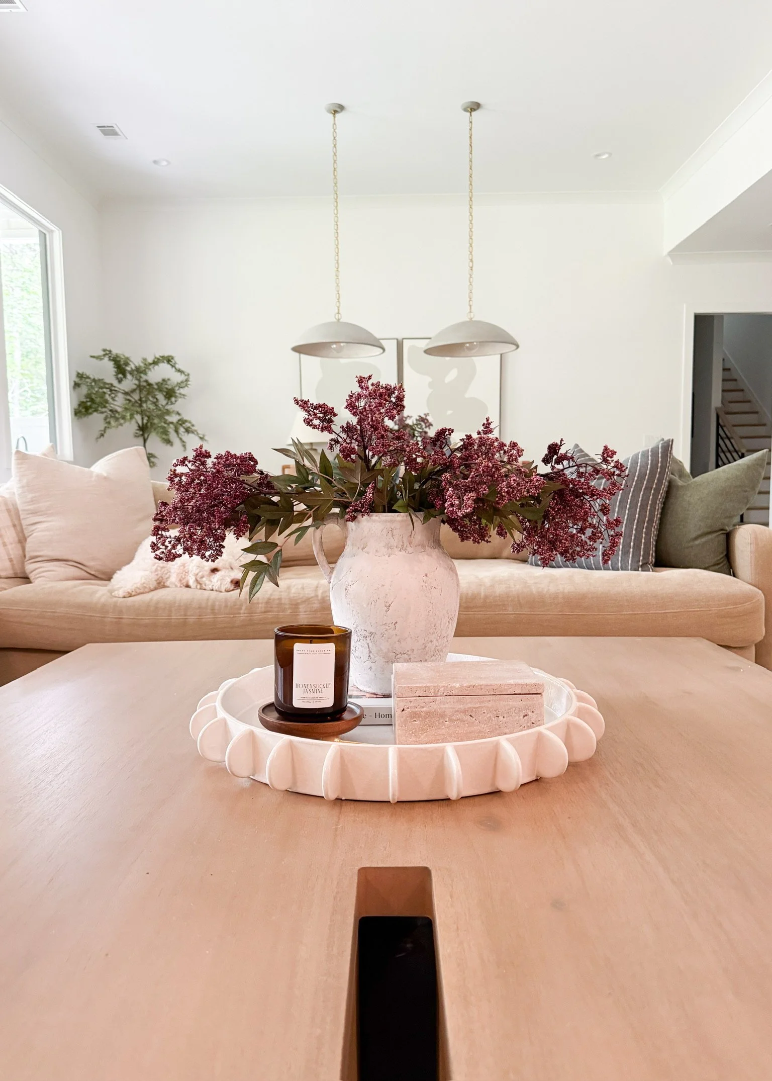 Bring life to your coffee table with a plant, dried stems, or a bowl of natural beads. It helps balance the “decor” with something grounded and organic.