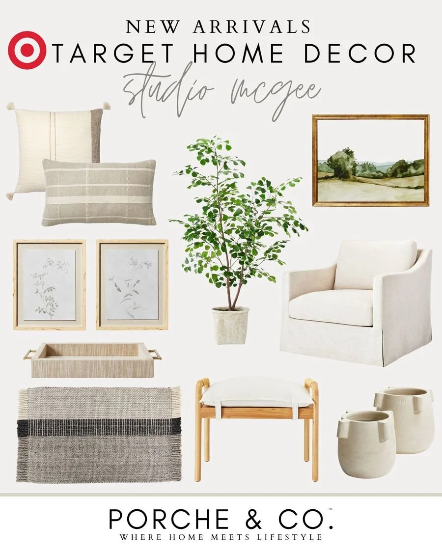 Studio McGee’s Target Collections are always great quality at a low price point, and these pieces have our ‘Modern Classic’ touch that we love to use while decorating in our own homes as well as our clients! Studio McGee’s Spring Collection is all about bright neutrals, woven textures, and spring greenery. We are loving all of the different textures the pieces have to bring a refreshed look to your space for Spring. Emily and the team here at Porche & Co. will definitely be trying to snag some of these pieces in person, so we will make sure to update you with the quality and how to style these pieces in your home! Happy shopping! 🎉